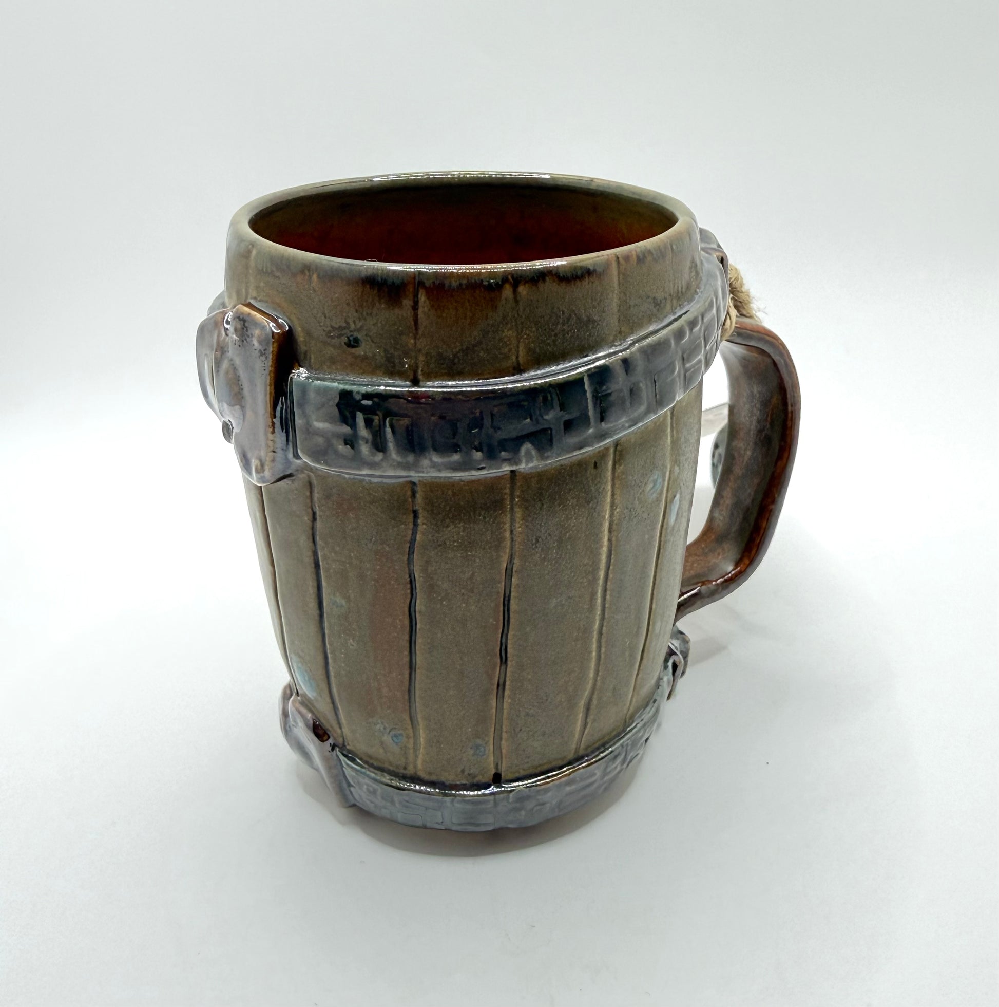 Wheel thrown mug, hand-carved & adorned with hand-built pieces. Mug is 100% ceramic stoneware. Bottoms have been smoothed to reduce any possible table scratching.